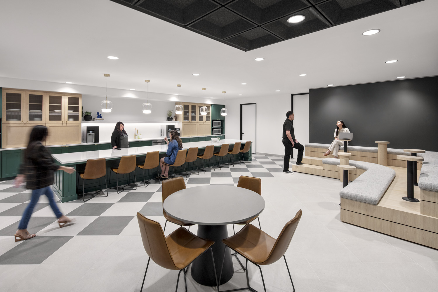 This commercial tenant improvement delivers a refined workplace environment that balances openness with privacy. The layout integrates open office areas with private offices and huddle rooms, supporting a range of work styles and collaboration needs.