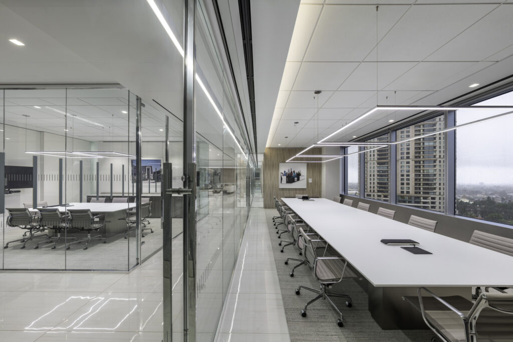 High end renovation of a workspace including reception lounge area, client-facing conferencing center, extensive meeting spaces, support areas, private offices, and pantry. Photos: 2022 Kyle Zirkus Photo