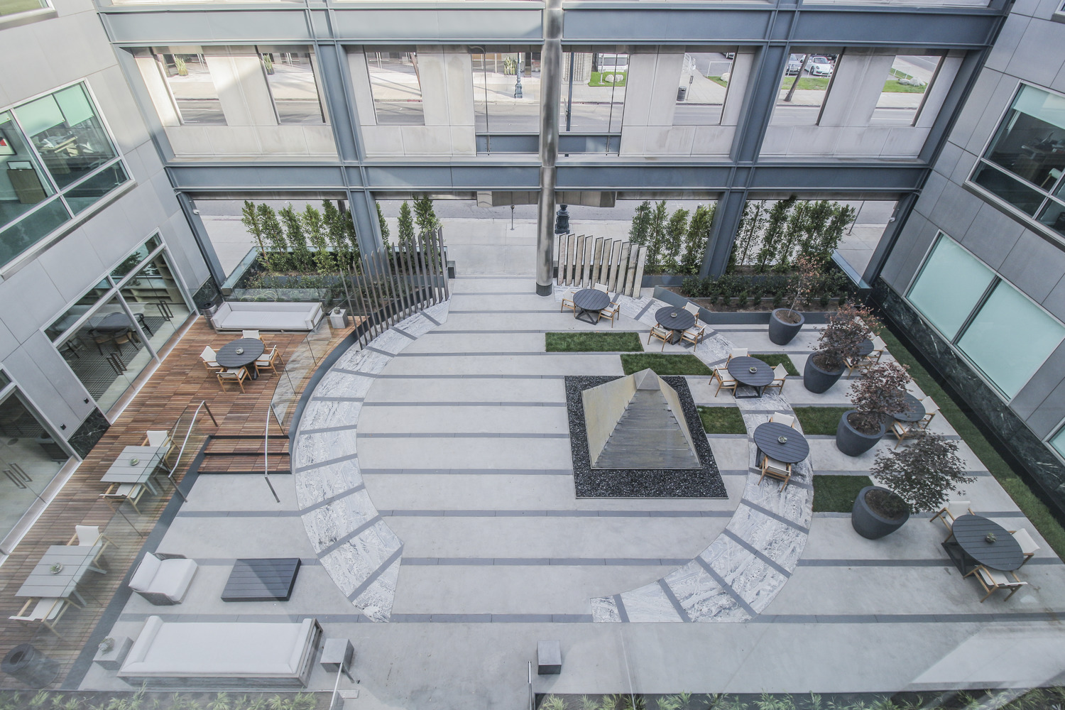 Interior build-out of 30,000 square feet over three floors for a talent agency. The new creative space includes a grand interconnecting stair between all three floors, 50-seat screening room, a voice-over and sound recording room, green room, private offices, open office space, conference rooms, a multi-purpose room, reception/lounge area, an atrium, a café/coffee bar on the ground floor and a renovated courtyard.