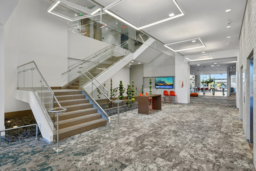 Full demolition and interior build-out of the first floor for Toyota Financial. The new layout featured multiple huddle rooms and conference rooms, along with open…