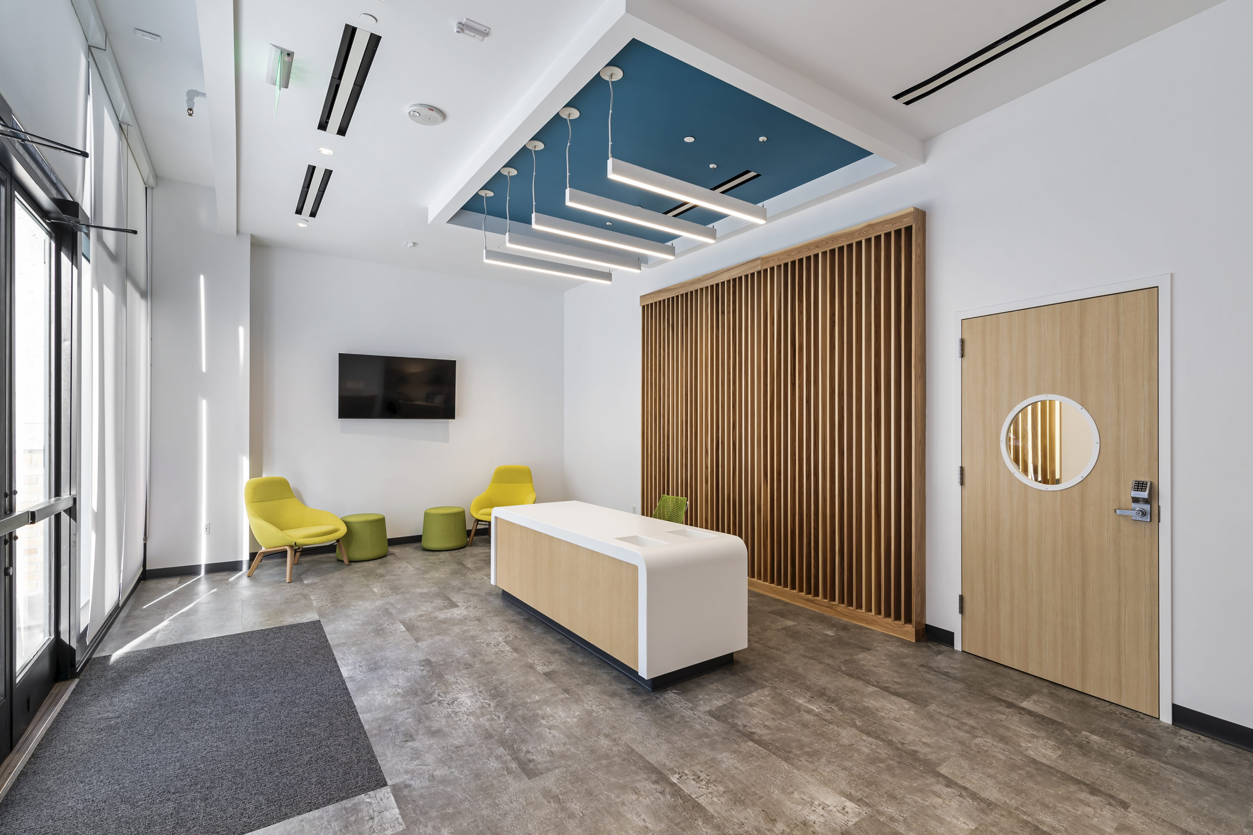 Oak Street Health typically targets underrepresented neighborhoods to build its spaces, to make healthcare more accessible to residents. Carbon Health also aims to make their clinics easily accessible, by targeting spaces near people’s workplaces. Clune has built multiple Carbon Health clinics in California. The spaces feature modern lobbies, exam rooms, labs and x-ray rooms.
